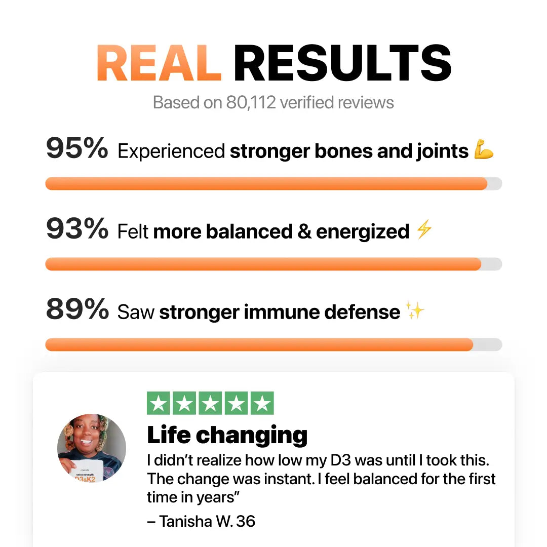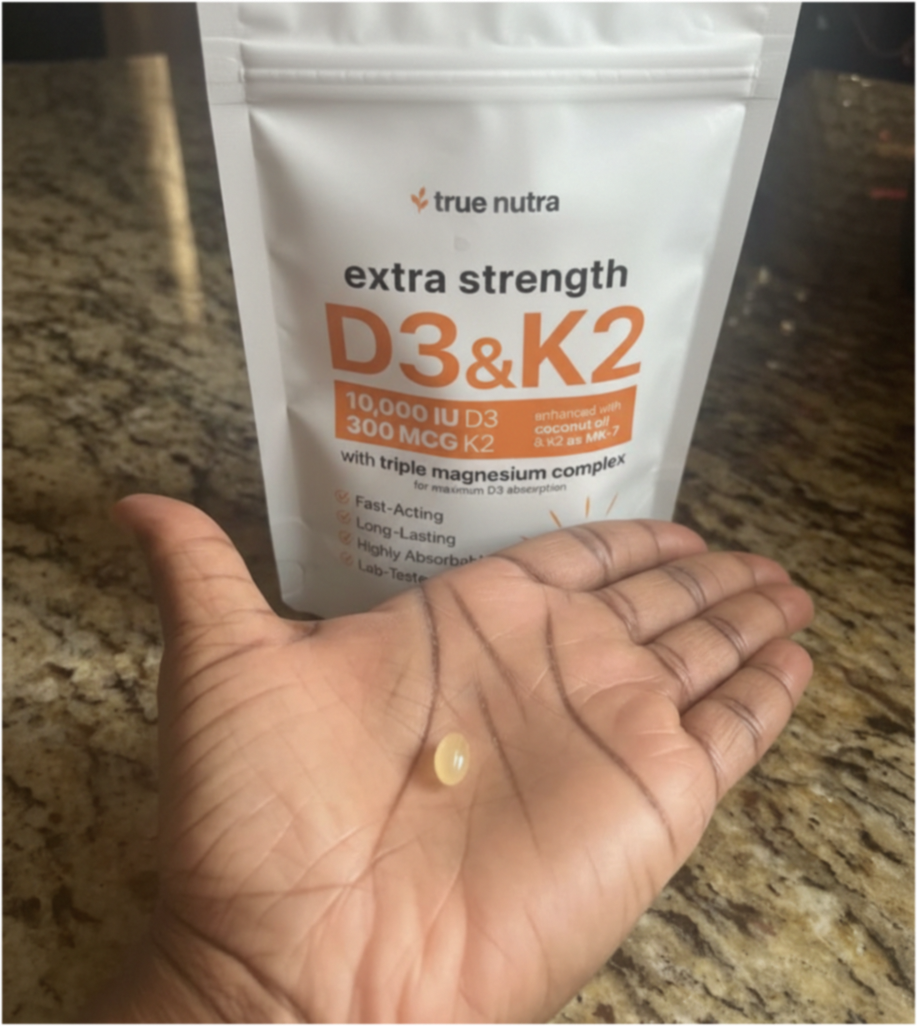 Unlike other supplements that aren’t absorbed properly and can leave calcium in the wrong places, our Vitamin D3 + K2 is clinically formulated to work where your body needs it most. Since 80% of Black people are Vitamin D deficient, this formula was designed to make sure you actually get the benefits — stronger bones, healthier calcium absorption, and balanced cortisol for better stress control.